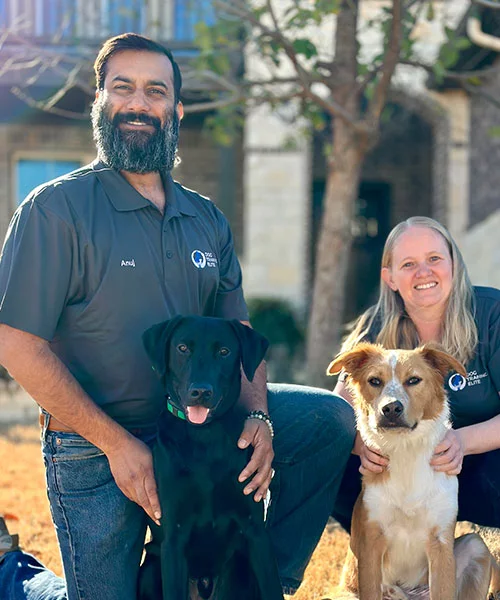 Anuj and Jessica, the proud faces of Dog Training Elite Coastal Bend, bring a heartfelt touch to the art of dog training. Anuj, with years of distinguished service as an Army Medic, has channeled his discipline and dedication into helping both dogs and owners alike. Jessica’s detail-oriented background as a lab tech and Financial advisor ensures their business runs with precision and warmth.